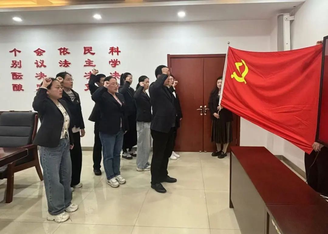 會上,2024年新轉正黨員圍繞預備期內自身的思想認識、工作情況、學習情況等方面依次作思想匯報,公司第二黨支部書記領誓。