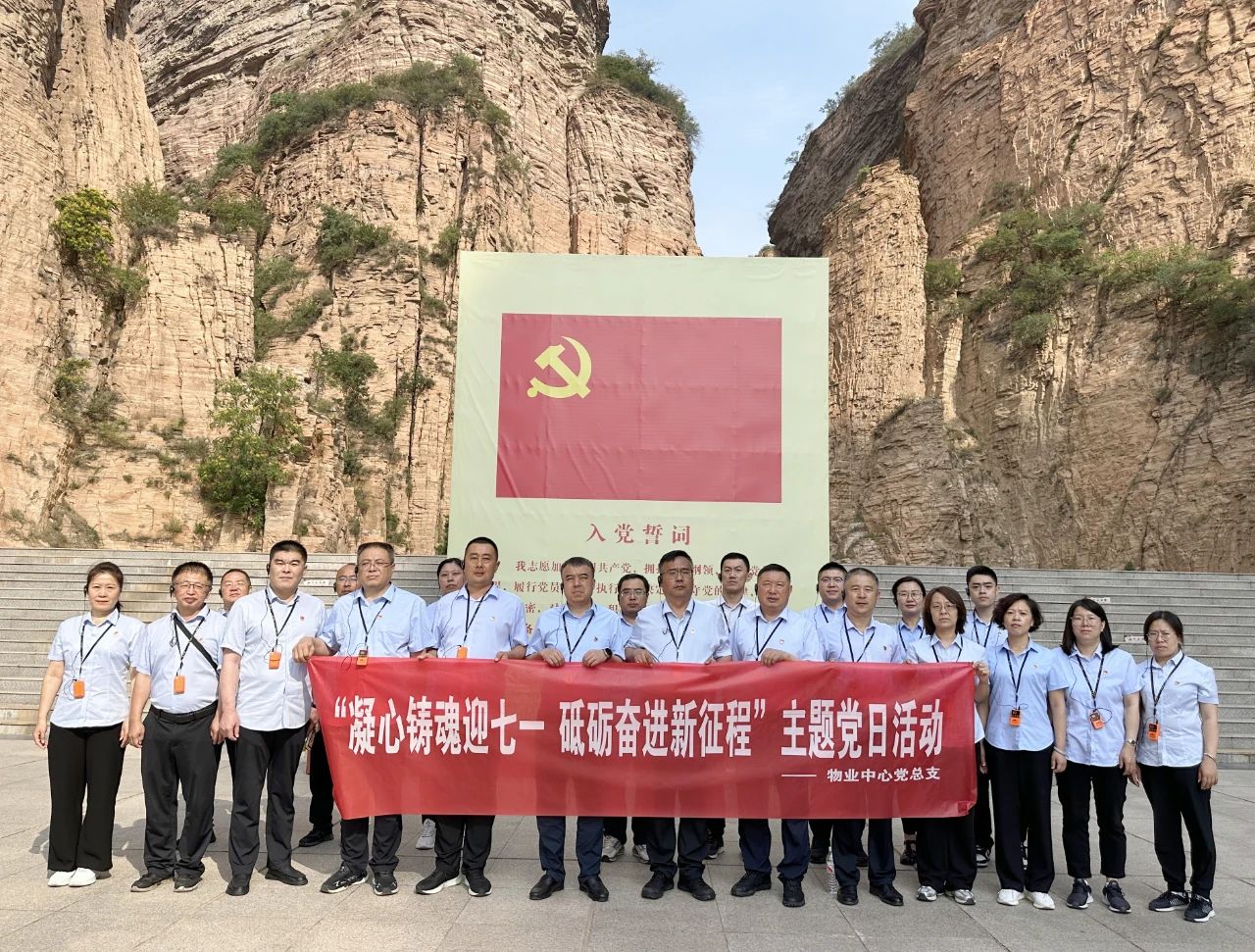 參觀結束后,黨員同志們懷著無比崇敬的心情莊嚴肅立在紅色廣場,整齊列隊,面向黨旗,舉起右拳,重溫入黨誓詞。錚錚誓言表達了作為黨員的責任與擔當,許下了對黨忠誠、永不叛黨的堅定承諾。